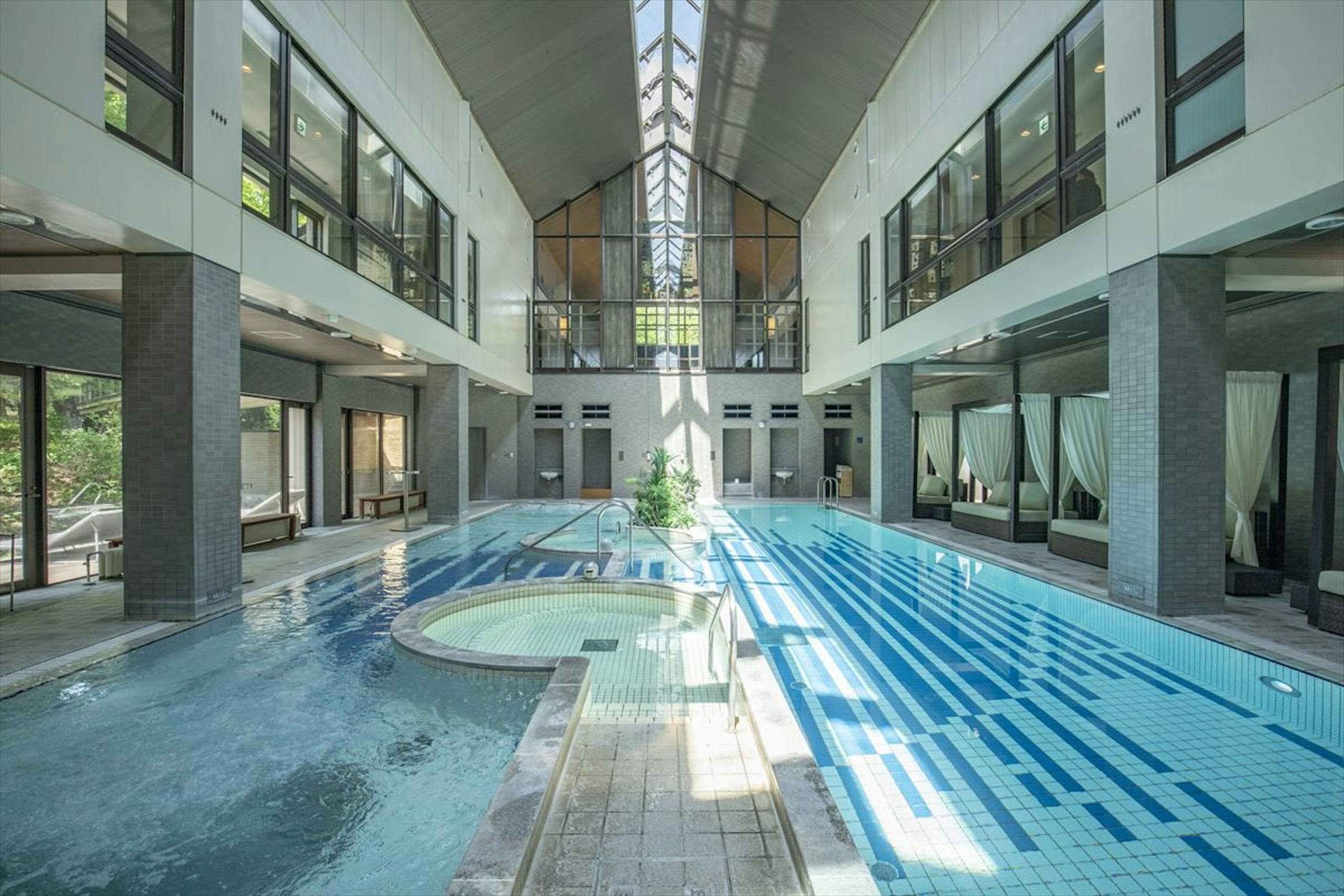 1年中楽しめる屋内プールは、プールサイドのガゼボで寛いだり、ナイトプールを満喫したりと、バカンス気分を満喫できるおすすめスポット。